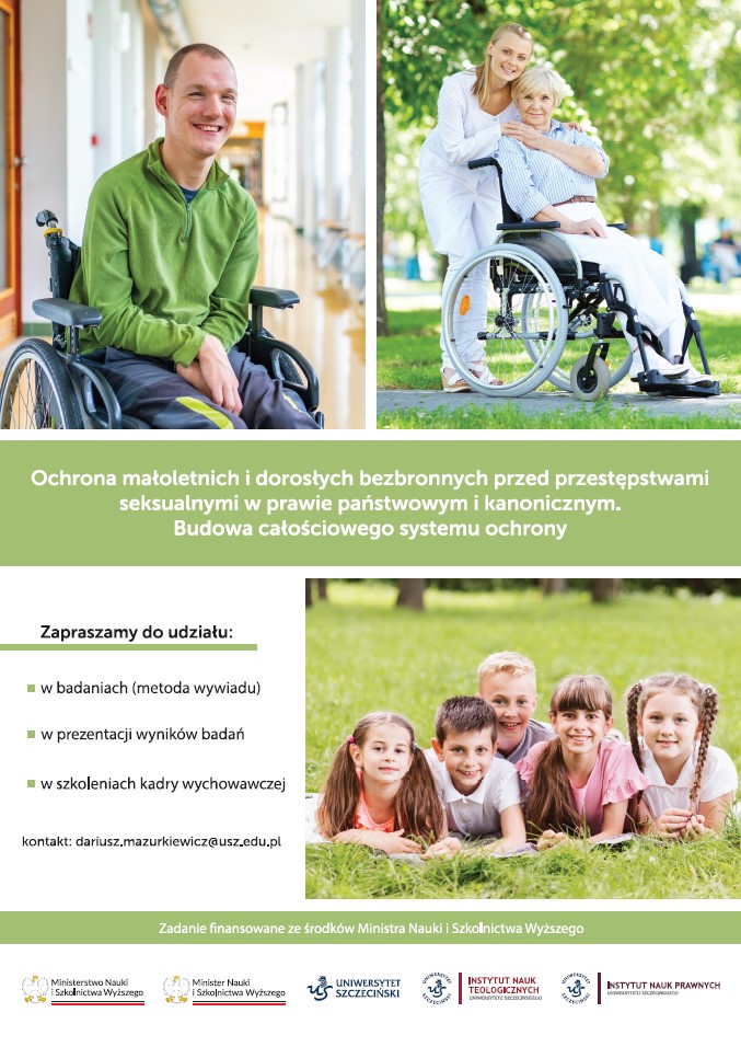 Instytut Nauk Teologicznych Uniwersytetu Szczecińskiego rozpoczął nowy projekt badawczy we współpracy z Wydziałem Prawa i Administracji „Ochrona małoletnich i dorosłych bezbronnych przed przestępstwami seksualnymi w prawie państwowym i kanonicznym. Budowa całościowego systemu ochrony”. Kierownikiem projektu jest ks. dr Dariusz Mazurkiewicz. Przedsięwzięcie potrwa do grudnia 2027 roku na podstawie zlecenia Ministra Nauki i Szkolnictwa Wyższego z dnia 12 czerwca 2025 r.