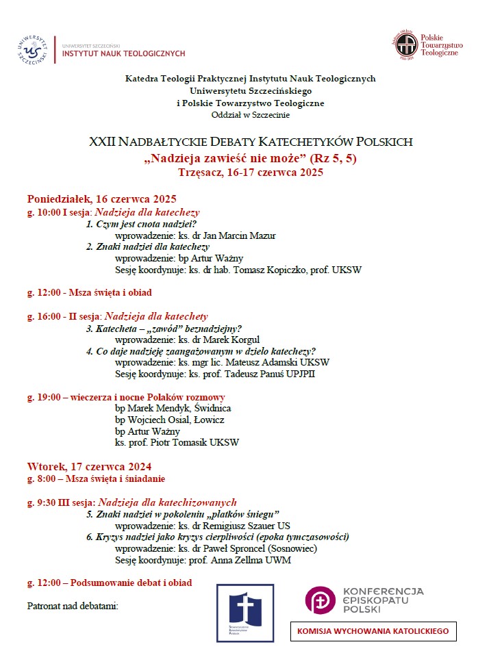 W dniach 16–17 czerwca w Trzęsaczu odbędą się XXII Nadbałtyckie Debaty Katechetyków Polskich. Konferencja jest organizowana przez Katedrę Teologii Praktycznej Instytutu Nauk Teologicznych Uniwersytetu Szczecińskiego wraz ze szczecińską sekcją Polskiego Towarzystwa Teologicznego.
